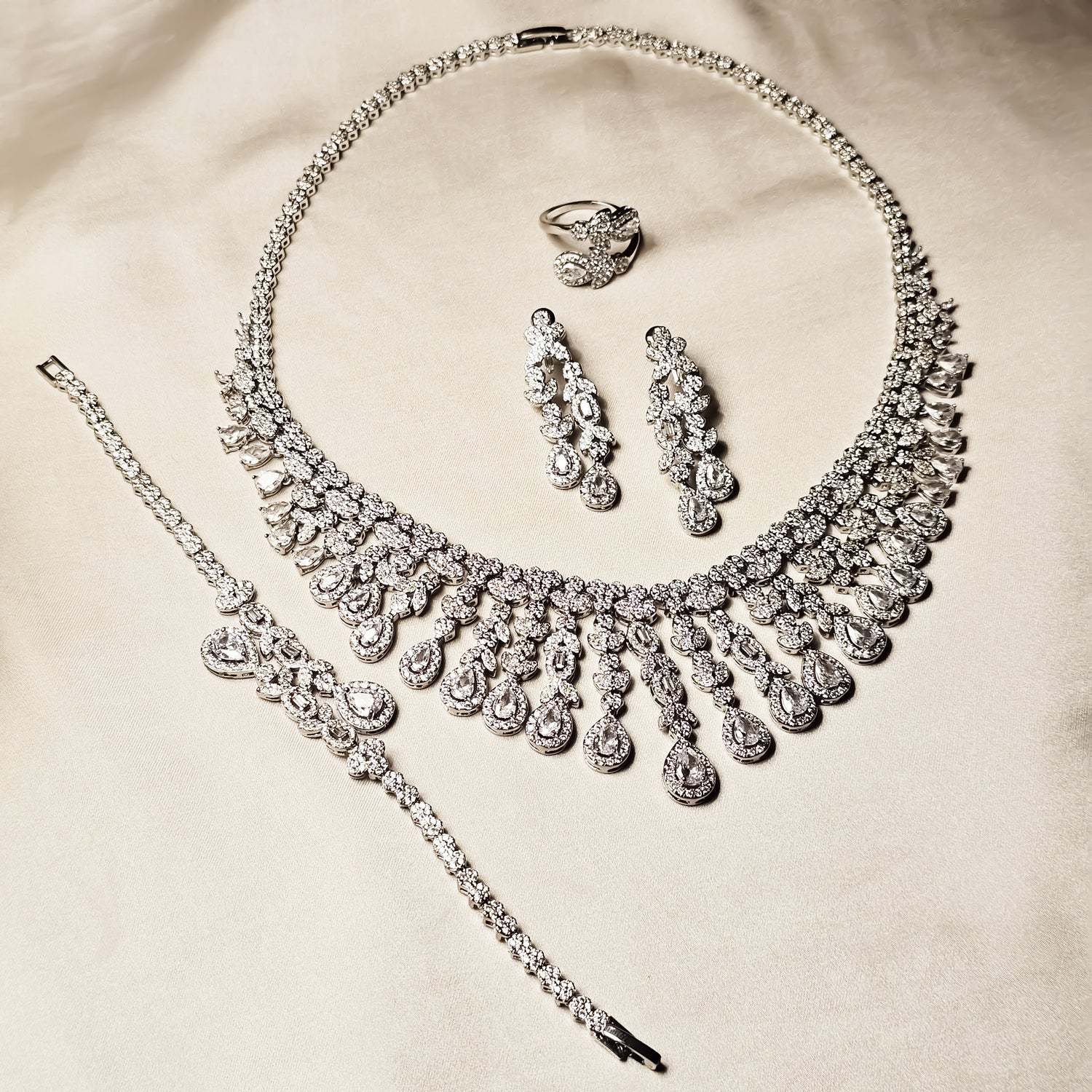 • Celestial Spark Platinum Pendant Earrings & Ring - FAH Jewelry
