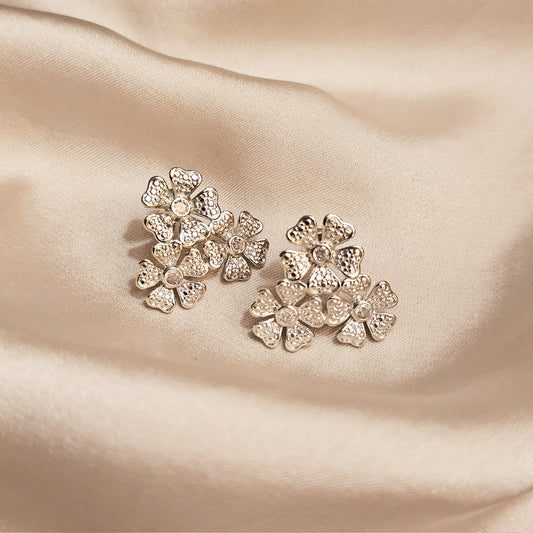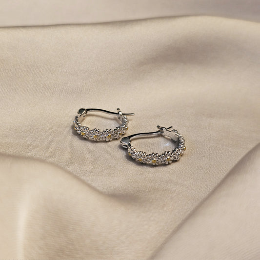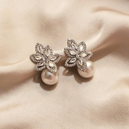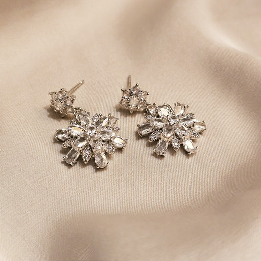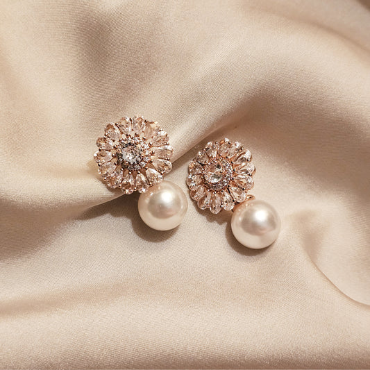 Fashionable Yellow Crystal Flower Stud Earrings with Cubic Zirconia Inlay, Alloy MateriaL