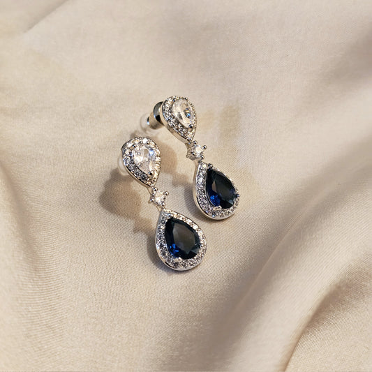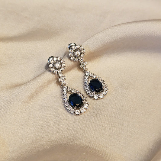 Blue Crystal Rhinestone Charm Earrings Necklace Ring Set