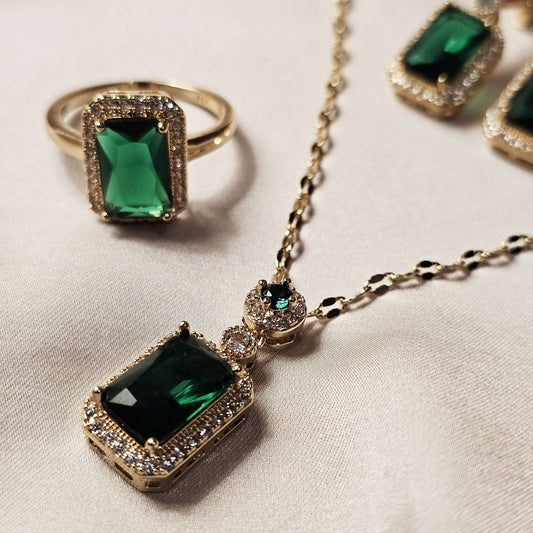 Emerald Perfume Bottle Jewelry Set Exquisite Necklace Earrings Ring