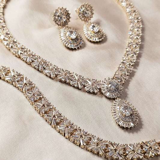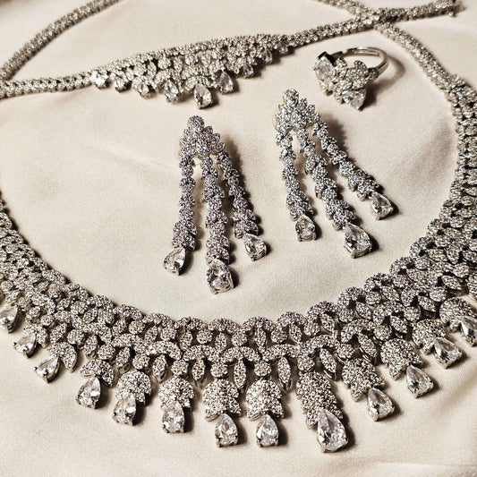 Royal Brilliant Cut Diamond Neklace Set With Ring And Breclet