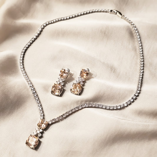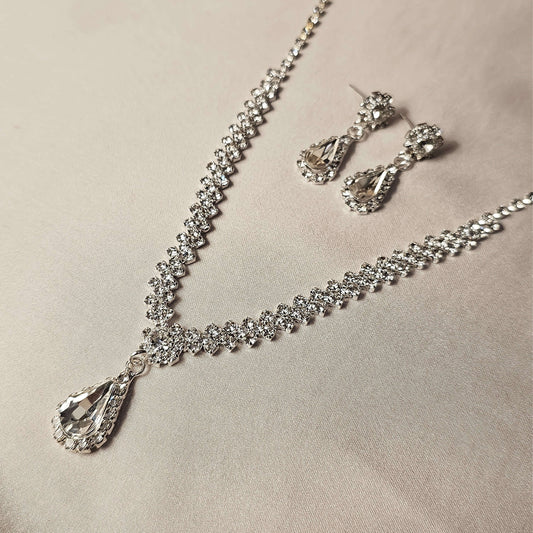 Rhinestones Long Pendant Full Crystal Silver Plated Necklace & Earrings