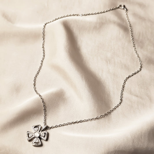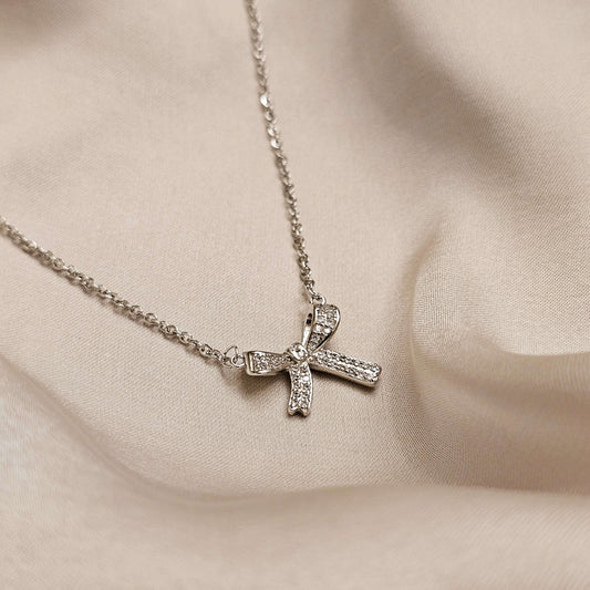 Fashionable Crystal Bowknot Pendant Necklace Stainless Steel