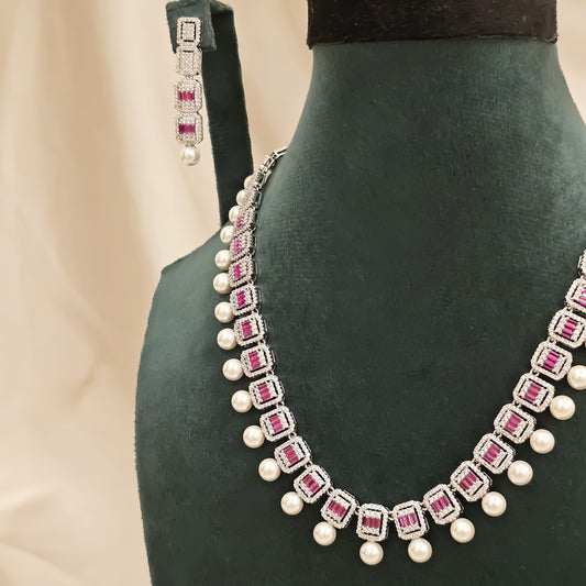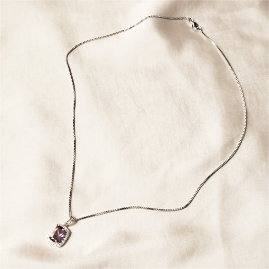 SQUARE SERENA NECKLACE - 925 SILVER (Pink)