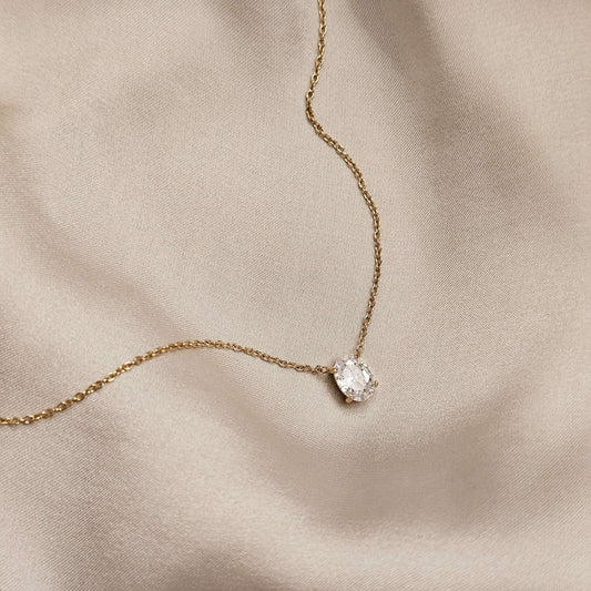 Minimalistic One Stone Diamond Zircon Pendant Stainless Steel