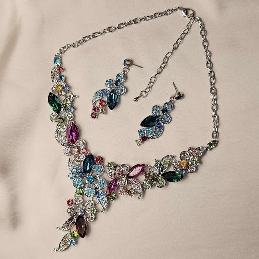 Eden Rhinestone & Bead Drop Necklace & Earring Set - Multicolor