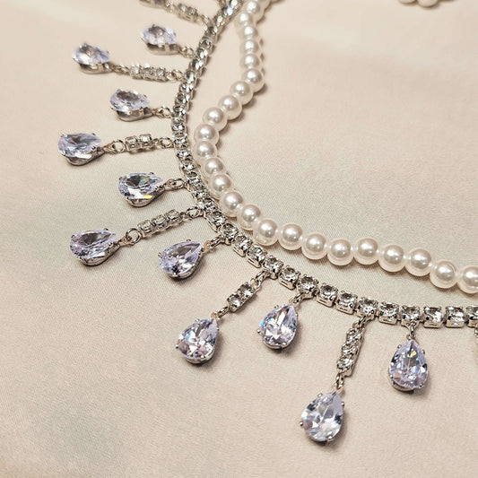 Luxury White Color Inlaid Crystal Glass Imitation Pearl Necklace