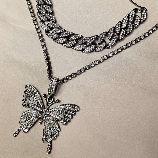 Sparkly Butterfly Rhinestone Pendant Necklace