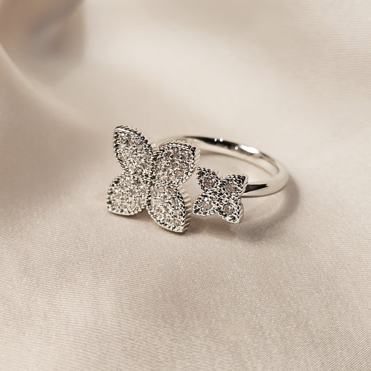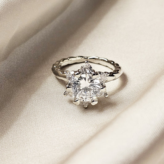 Super Zircon Dainty Flower CZ Garland Silver Ring