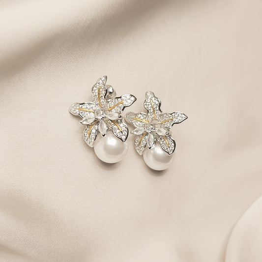 Luxurious Silver-Tone Faux Pearl & Rhinestone Flower-Shaped Jewelry Set with Braclet