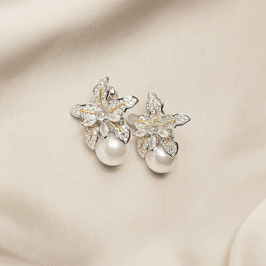 Two Tone Flower Simulated Pearl Earrings