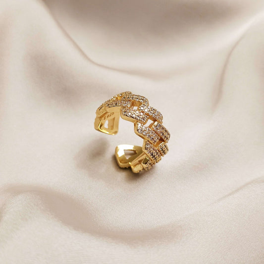 Chunky Chain Opening Link Twisted Geometric Ring