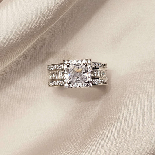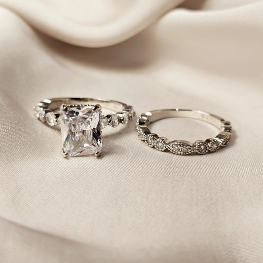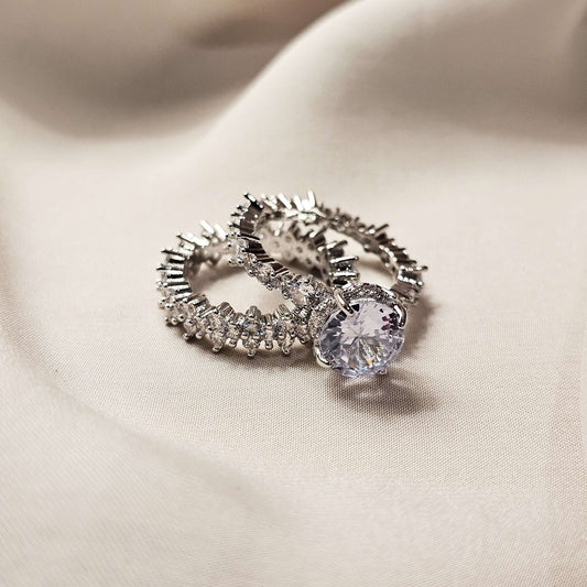 Double Luxury Ring Set Rhodium Plated Diamond Cut