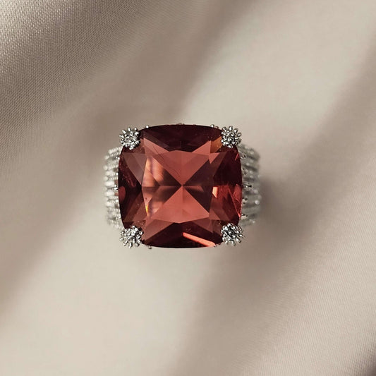 Luxurious Charming Faux Ruby Ring Cubic Square Zirconia Ring