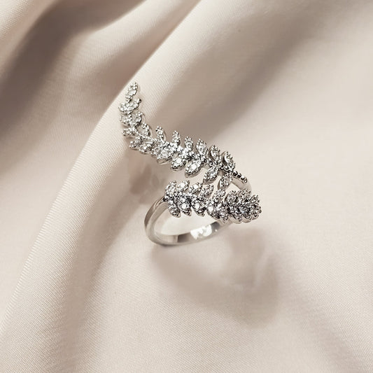 Zircon Rhinestone Leaf Ring