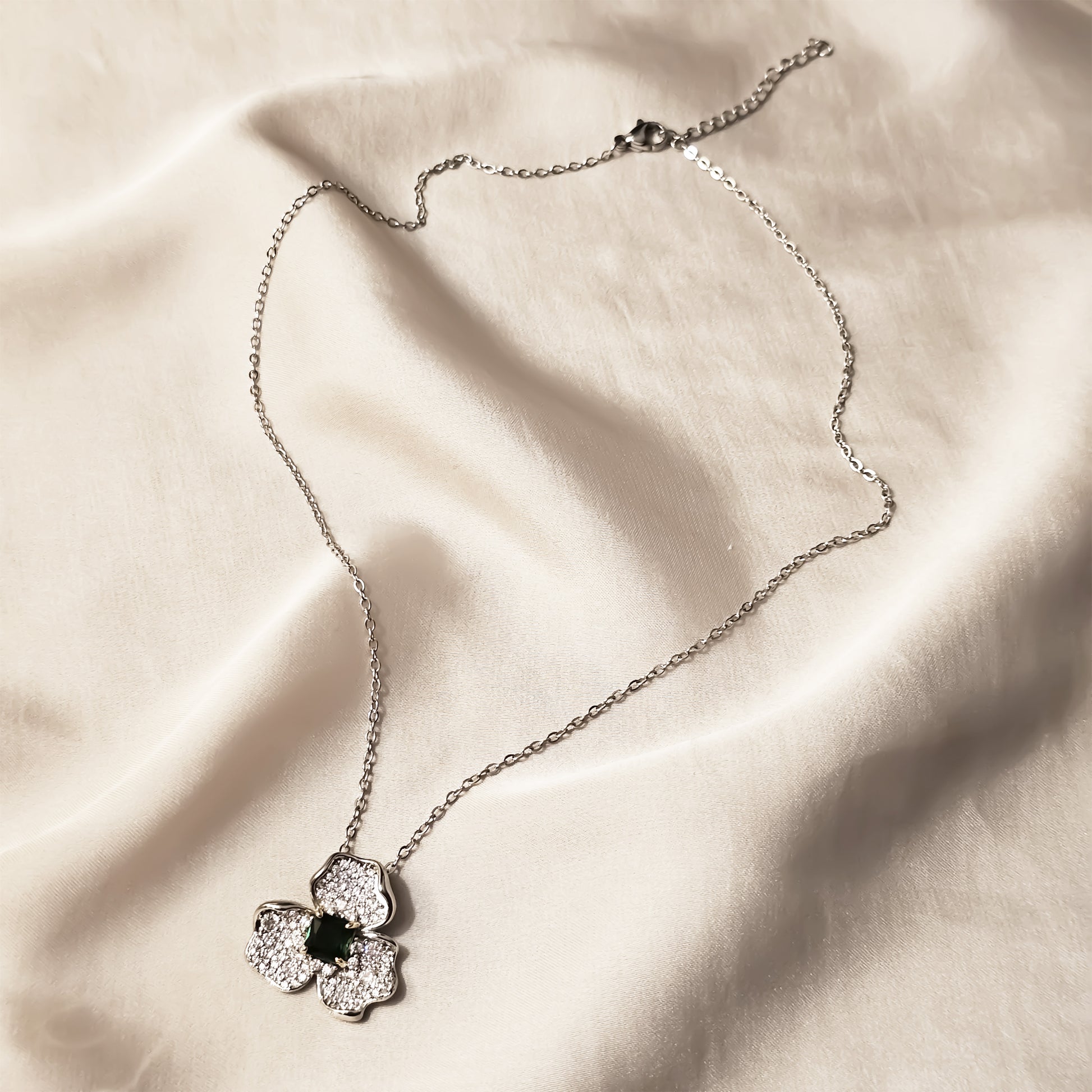 Sterling Silver Green Stone Dimond Look Pendant